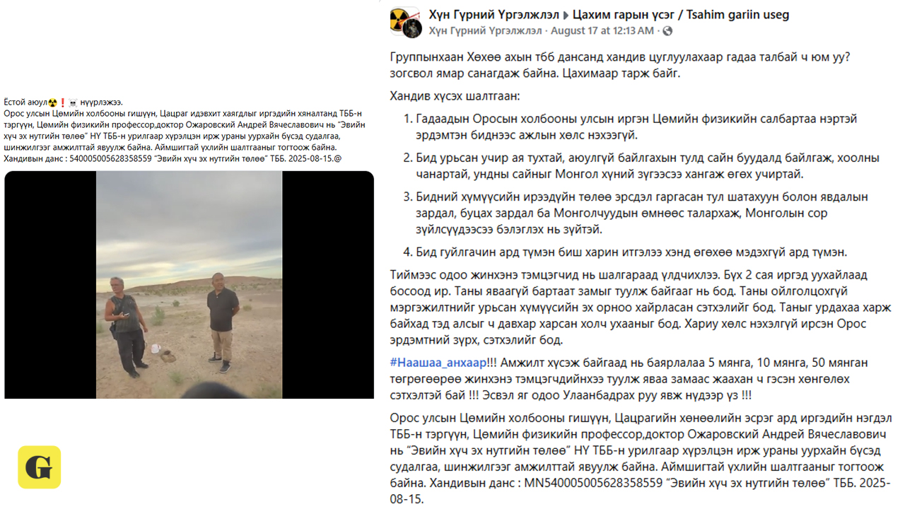Уран эсэргүүцэгчид гэх нэртэй хүмүүс цахим сүлжээнд хандив цуглуулан, эх орныхоо төлөө тэмцэж байгаа мэт “жүжиг” тоглож буй. Тэгвэл ээлжит нэгэн жүжиг нь ОХУ-ын цөмийн физикч Андрей Вячеславович Ожаровский гэх хүнийг авчран судалгаа шинжилгээ хийлгэж байгаа бололтой.