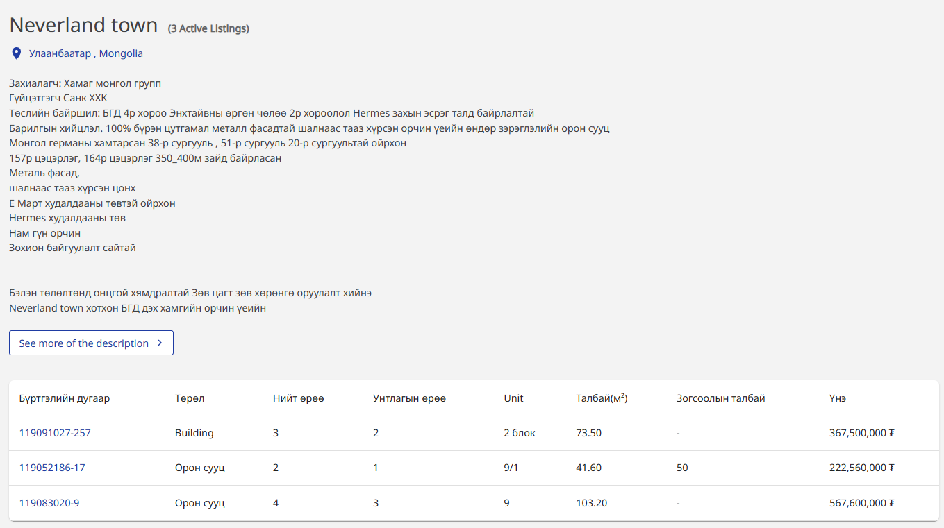 Түүний Хөрөнгө орлогын мэдүүлэгтээ мэдүүлж ирсэн, барилга, худалдааны чиглэлийн "Хамаг Монгол групп" компани 2022 онд Баянгол дүүргийн 10 дугаар хороололд 16 давхар бүхий хоёр орон сууцны барилга эхлүүлж, ашиглалтад орсон.