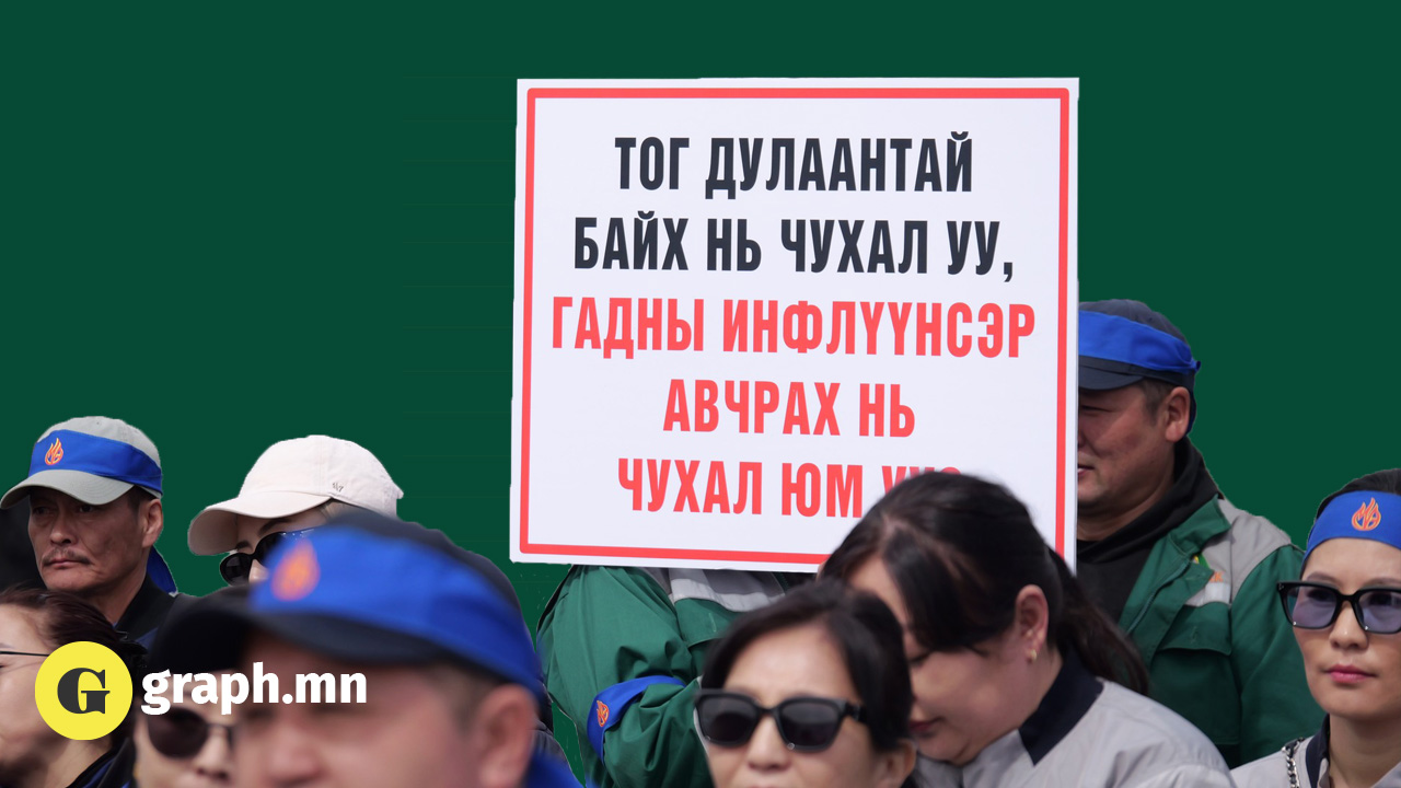 Монголын эрчим хүч, геологи, уул уурхайн ҮЭ-ийн холбооны зүгээс ажилтнуудын эрх ашгийг төлөөлж, эрчим хүчний салбарын ажилтнуудын цалин хөлсийг нэмэгдүүлэх, нийгмийн баталгааг хангахад шаардлагатай хөрөнгийн эх үүсвэрийг нэн даруй шийдэж өгөхийг Улсын Их Хурал, Засгийн газраас шаардан жагсаал зохион байгуулж байгаа билээ. Жагсаал хоёр дахь өдрөө үргэлжилж байгаа бөгөөд 17 байгууллагын 300 гаруй ажилчин жагсаалд оролцож байна.