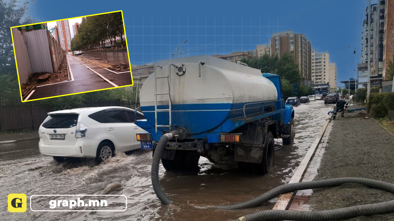 Барилгын компаниуд борооны ус зайлуулах шугам руу хөрсний усаа шахсанаар зам талбай усанд автаж байна