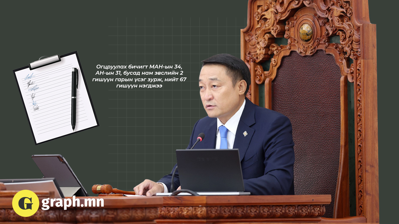 УИХ-ын 67 гишүүн УИХ-ын дарга Д.Амарбаясгаланг огцруулах бичигт гарын үсэг зуржээ