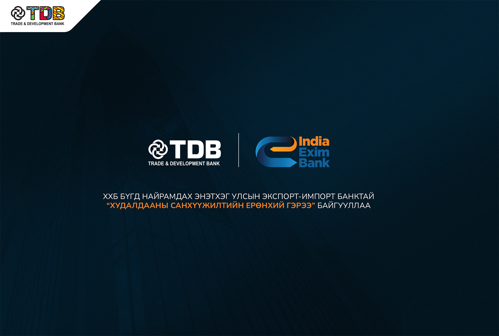 ХХБ Бүгд Найрамдах Энэтхэг улсын Экспорт-Импорт банктай “Худалдааны санхүүжилтийн ерөнхий гэрээ” байгууллаа