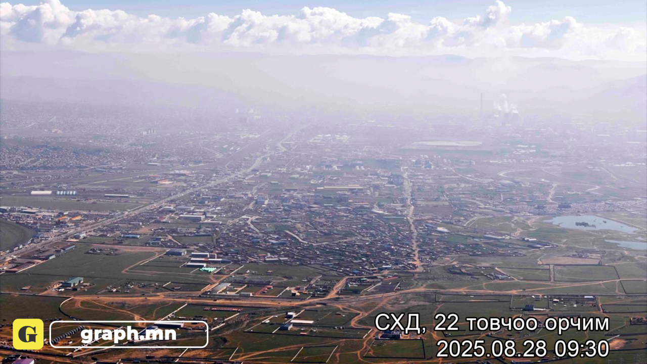 Улаанбаатар хотод галлагааны улирал эхлээгүй, нийт автомашины тал хувь нь л хөдөлгөөнд оролцож буй. Түүнчлэн өчигдөр буюу 8 сарын 28-нд Улаанбаатар хотын цаг агаар +21 градусын дулаан байв. Гэтэл Улаанбаатар хотын агаарын бохирдол ямархуу хэмжээтэй байгааг доорх зураг харуулаад өглөө. Ямар ч нарийвчилсан тоон статистик, агаарын чанарын үзүүлэлт дурдалгүйгээр энэ зураг агаарын бохирдол, тоосжилтын бодит нөхцөл байдлыг тайлбарлачихлаа.