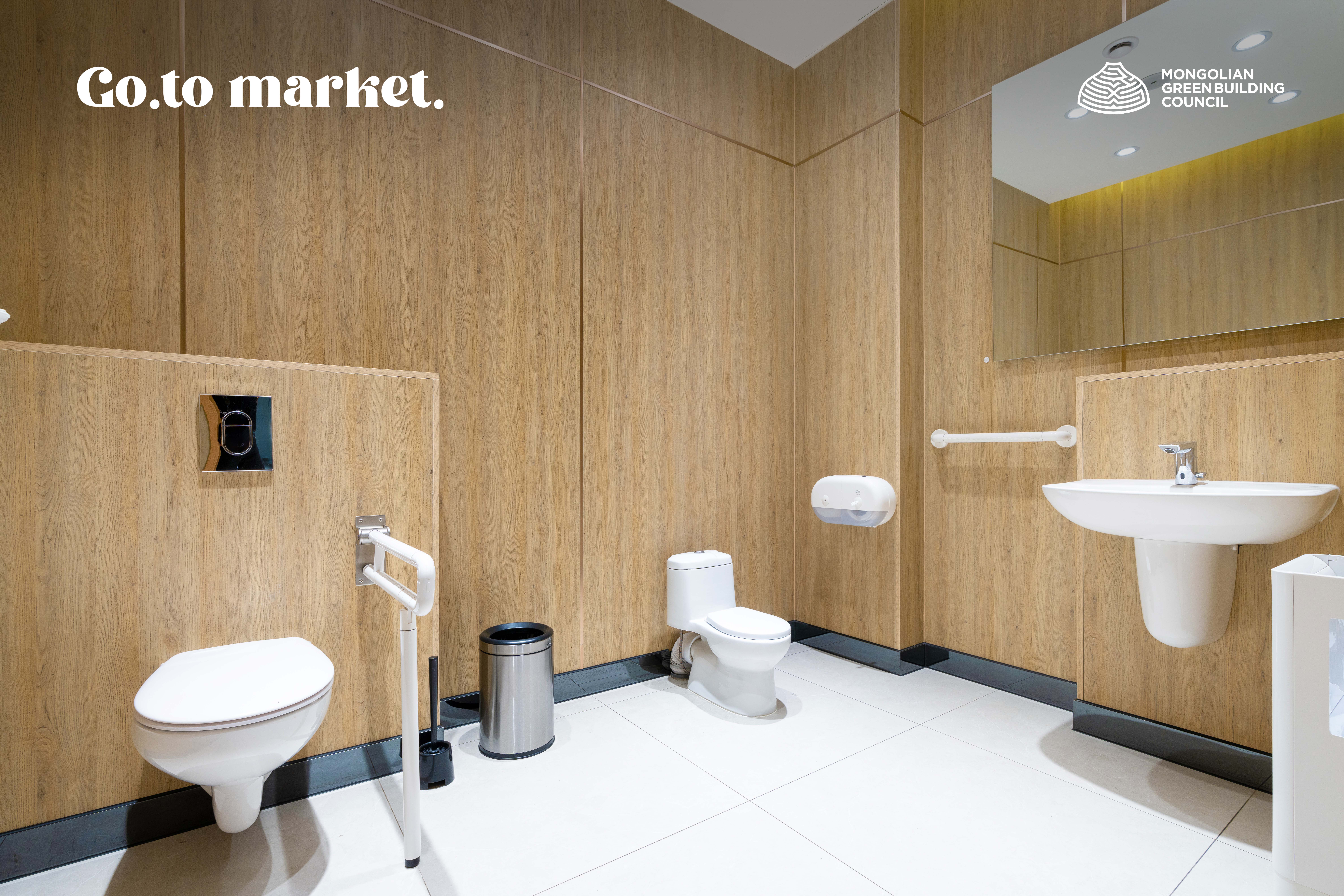 Түүнчлэн ногоон барилгын стандартын дагуу барилга байгууламжийн нийт 20 хувьд ногоон байгууламж төлөвлөх ёстой байдаг бол Go to market-н хувьд гадна талбай болон барилгын хамгийн дээд давхарт ногоон байгууламжийн тохижилт хийснээр нийт 35,7 хувьд ногоон байгууламжийн тохижилт хийсэн Монголын анхны барилга болж дахин нэг жишгийг тогтоогоод буй. Мөн худалдаа үйлчилгээний талбайн бүх хог хаягдлыг зориулалтын агуулахад төвлөрүүлэн нэгдсэн ангилалт хийж хуванцар, шил, цаас зэрэг хаягдлыг ангилан ялгаж түүхий эд дахин боловсруулдаг үйлдвэрт гэрээтэйгээр нийлүүлдэг зэрэг нь энэ төрлийн үйлчилгээ үзүүлэгчдийн хувьд чухал үзүүлэлт болж байна.