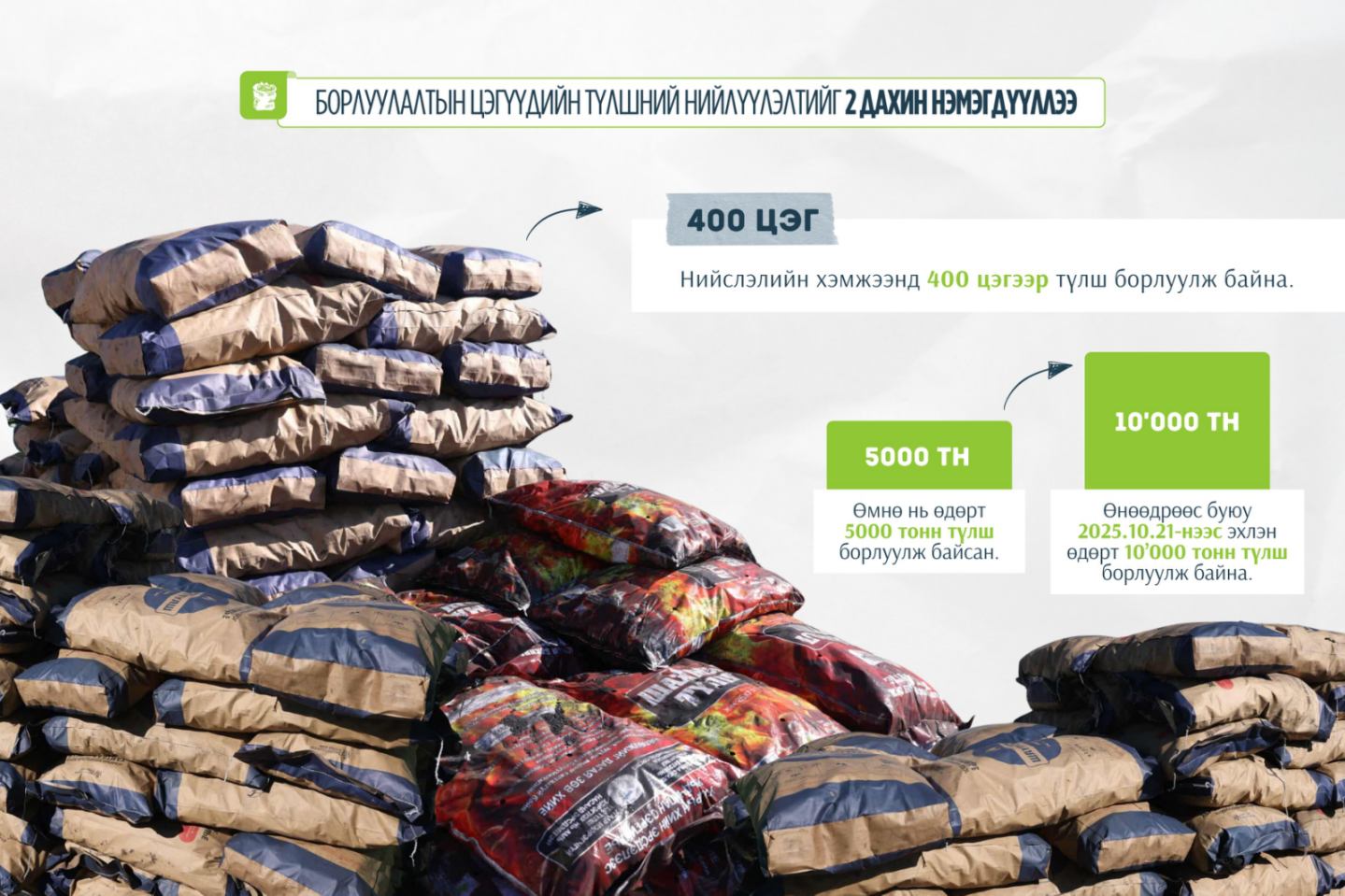 Иймээс бүртгэлийг хянаж, нэг өрхөөс нэг л гишүүн түлш авч байхаар тохируулснаар зохиомол хомсдол үүсэхгүй. Борлуулалтын цэгүүдийн нийт түлшний 50 хувь нь хуучин мидлинг, 50 хувь нь шинэ түлш байна. Арванхоёрдугаар сарын сүүлчээр 100 хувь хагас коксон шахмал түлш буюу шинэ түлш борлуулна. Энэ үед агаарын чанар ямар түвшинд очсон байна вэ гэдгийг бодитоор хэмжиж олон нийтэд танилцуулна” гэв.
