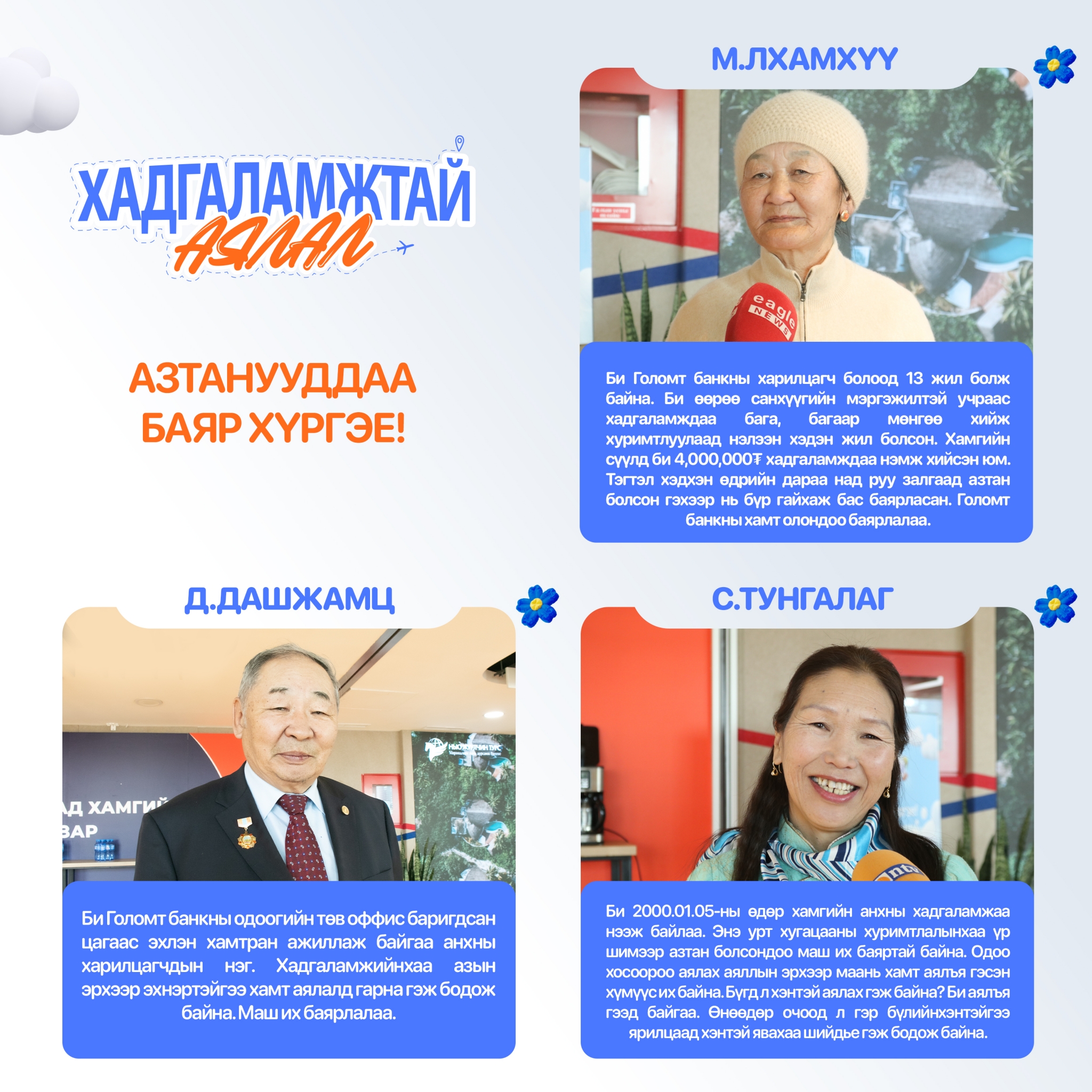 Голомт банк харилцагчдынхаа хуримтлуулах зуршлыг дэмжих зорилгоор “Хадгаламжтай аялал” аяныг хоёр дахь жилдээ амжилттай хэрэгжүүлж байна. Аяны хүрээнд 2025 онд нийт 30 азтаныг хосоор нь БНСУ /Жэжү/, Тайланд, Вьетнам зэрэг орнуудаар аялах аяллын эрхээр урамшуулахаар төлөвлөөд байгаа юм.