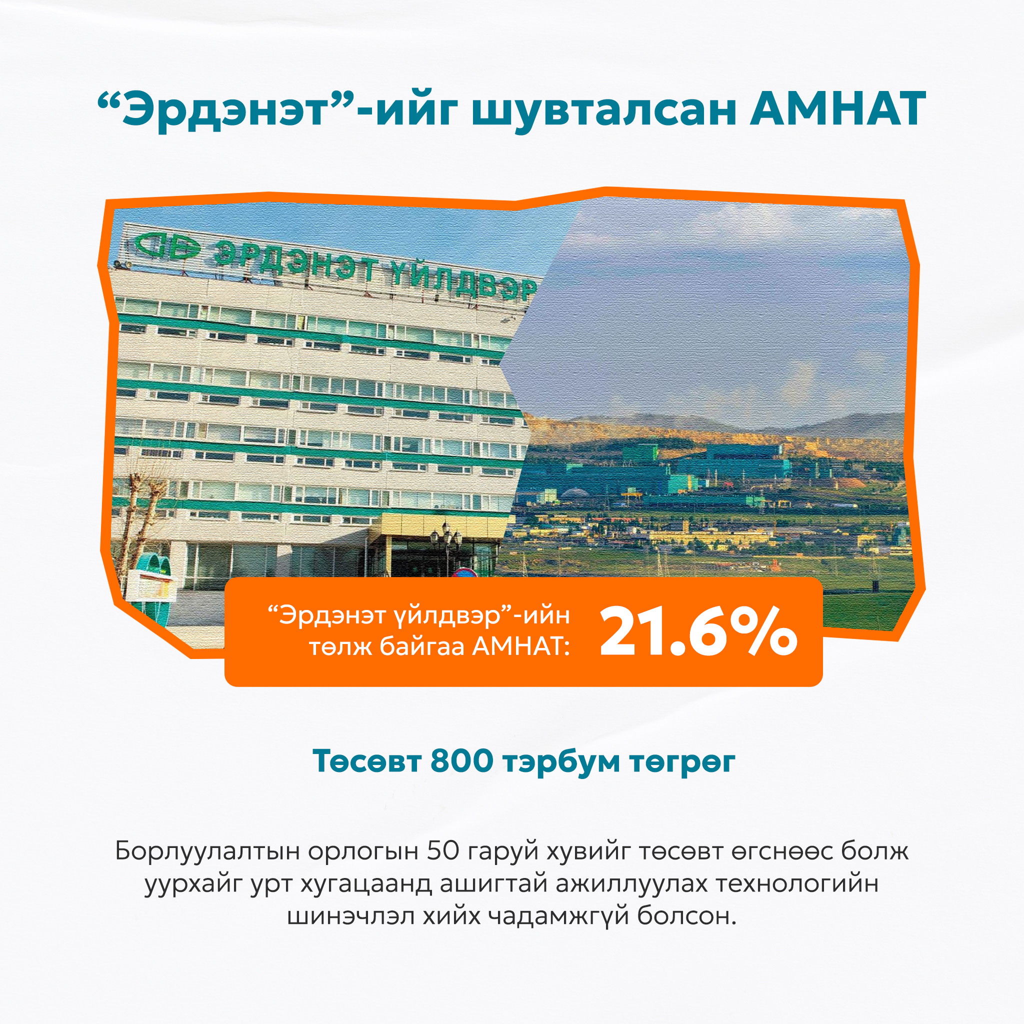 Харамсалтай нь “Эрдэнэт үйлдвэр” нийт борлуулалтын орлогынхоо 50 гаруй хувийг төсөвт татвар, хураамж хэлбэрээр төвлөрүүлж байгаагаас АМНАТ хамгийн том жин дарж байна. “Үндсэндээ шувтлуулж байна” гэж “Эрдэнэт үйлдвэр” ТӨҮГ-ын дарга Г.Ендон хэлсэн. Өөрөөр хэлбэл, 20 гаруй хувийн АМНАТ төлж байгаа учир үйлдвэрийг урт хугацаанд, тогтвортой ажиллуулахад шаардлагатай хөрөнгө оруулалтыг хийх мөнгө цаана нь үлдэхгүй байгаа аж.