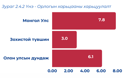 Манай улсын орон сууцны медиан үнэ, өрхийн медиан орлогын харьцаа 2023 оны байдлаар 7.8 байгаа нь орон сууц худалдан авах чадвар муу, хүртээмжгүй гэсэн ангилалд хамаарч байна. 2023 оны байдлаар манай улсын орон сууцны үнэ-орлогын харьцаа олон улсын дунджаас 1.32 дахин, зохистой түвшнээс 2.6 дахин өндөр байна.