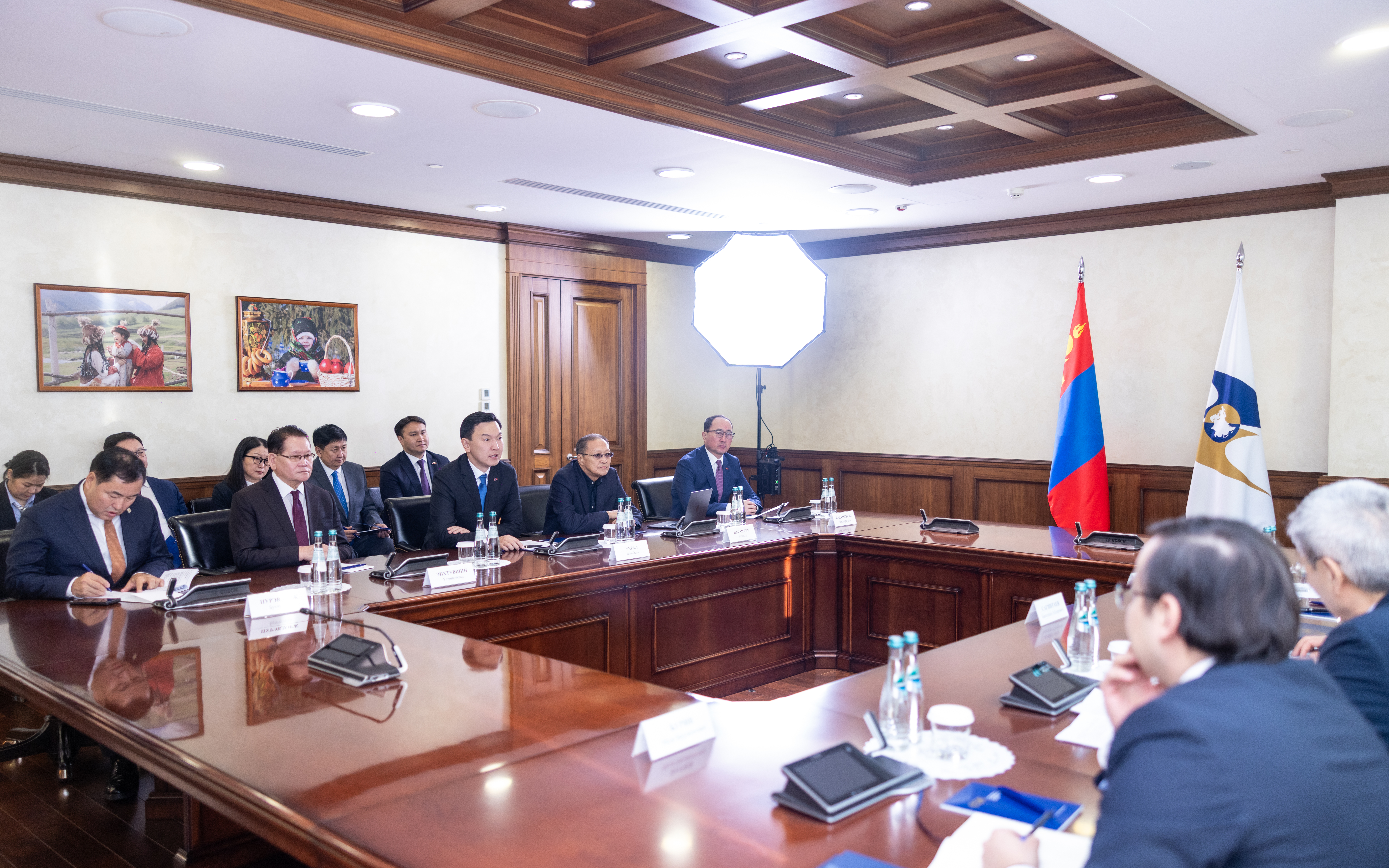 Мөн Монгол Улс, ЕАЭЗХ хоорондын Худалдааны түр хэлэлцээрийг Монгол Улсын Их Хурлаар соёрхон баталсныг онцлон тэмдэглээд, уг хэлэлцээрийг соёрхон баталсан тухай төлөөний ноотыг гардуулав.