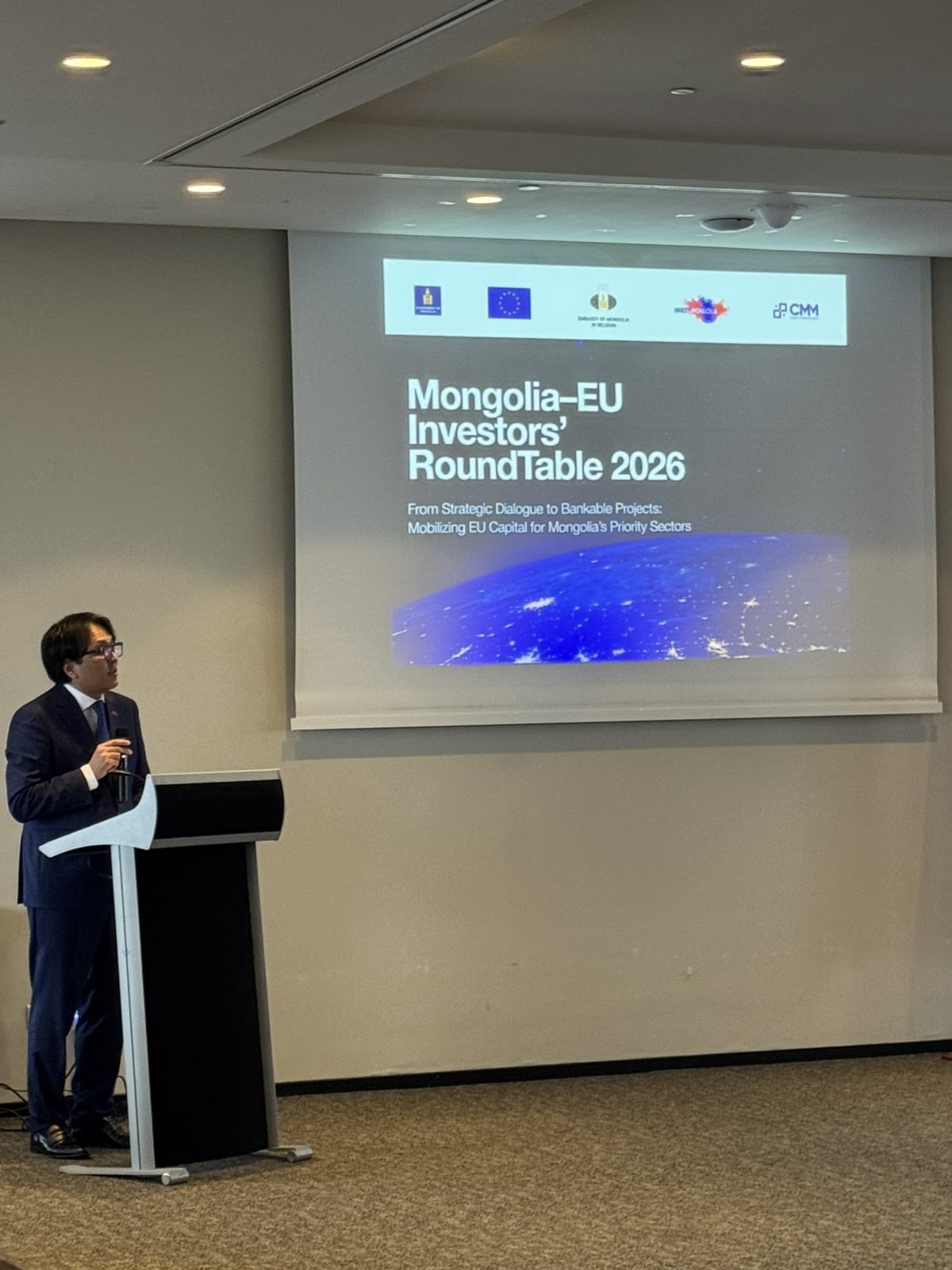 Монгол Улсын Засгийн газар, Европын Холбоо, Монгол улсаас Бельгийн хаант улсад суугаа элчин сайдын яам, болон Европын Хөрөнгө Оруулалтын Банк (ЕХОБ) хамтран Брюссель хотод 2026 оны 3-р сарын 13-ны өдөр Монгол-Европын Холбооны хөрөнгө оруулалтын дугуй ширээний уулзалтыг амжилттай зохион байгуулав. Энэхүү арга хэмжээний зорилго нь Монгол Улсын Засгийн газар, ЕХОБ-тай байгуулсан Санамж бичгийн хэрэгжилтийг хангах, эрчим хүч, банк санхүү болон тэргүүлэх ач холбогдол бүхий төслүүдэд гадаадын хөрөнгө оруулалт татах, Европын хөрөнгө оруулагчид болон Монголын хувийн хэвшлийн оролцоо, төр–хувийн хэвшлийн хамтын ажиллагааг дэмжихэд чиглэгдсэн болно.