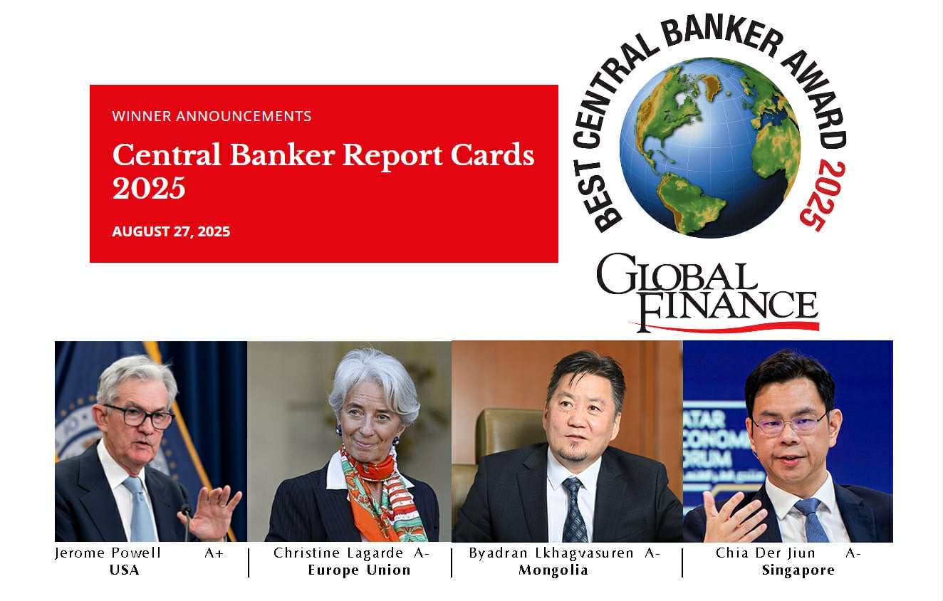 “Global finance” сэтгүүлээс Монголбанкны Ерөнхийлөгч Б.Лхагвасүрэнг “BEST CENTRAL BANK AWARD 2025”-д өндөр үнэлгээ авсан Төв банкны удирдлагуудын нэгээр нэрлэлээ